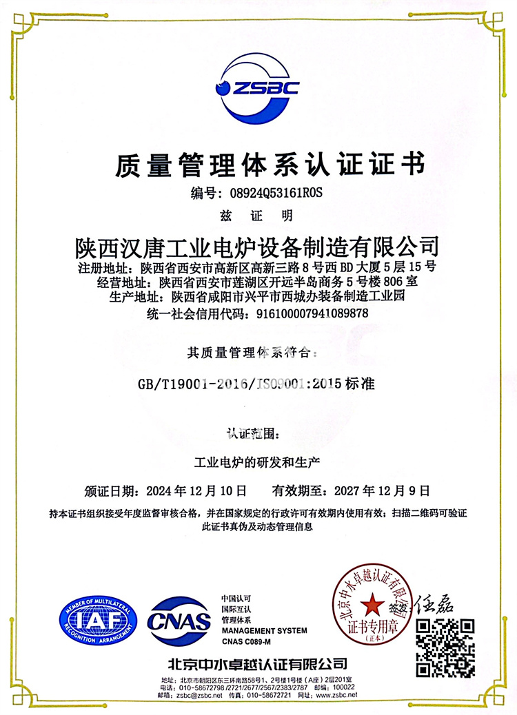 质量管理体系认证证书