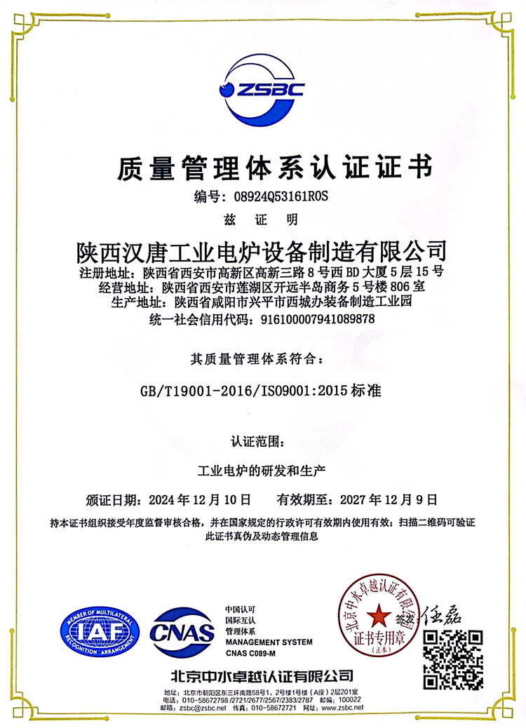 质量管理体系认证证书